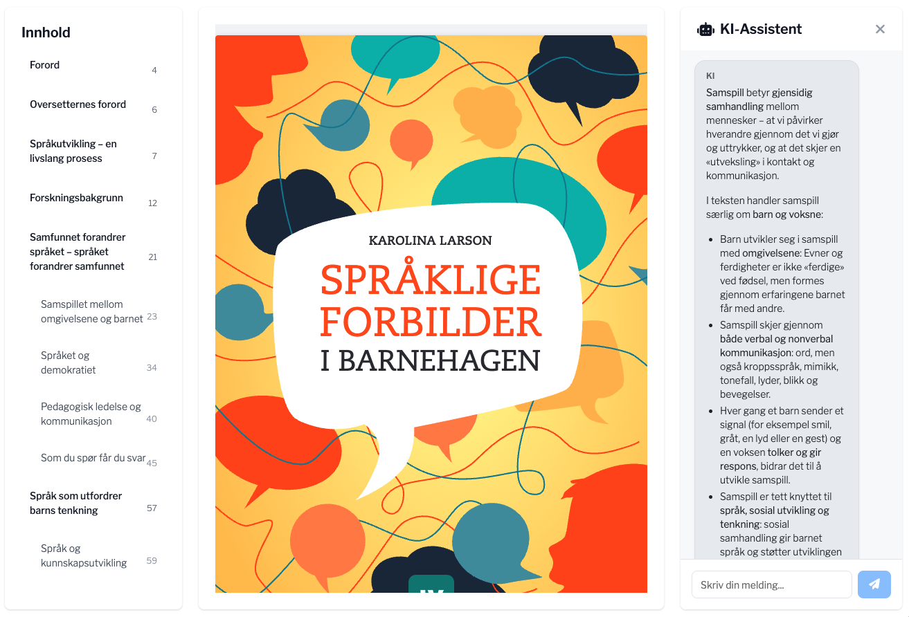 Egen meny for raskt å finne innhold og en Ki-assistent som svarer deg på spørsmål fra boken.